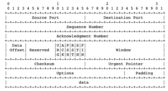 但写了这么多,还没有看一下TCP报文是什么结构的,实在不应该,这里还是祭出 rfc 793 里的 ascii art(并顺便佩服rfc大佬的画图功力)
